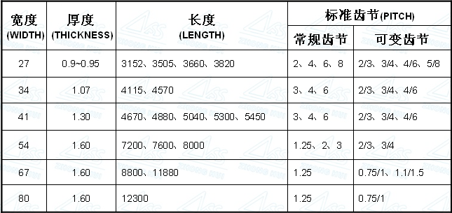 帶鋸條的通用規(guī)格如下表所示: